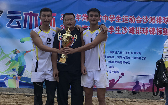 11月28日,由海南省教育厅、省文化广电出版体育厅主办,海南省员工体育协会、琼海市海桂公司承办的2017年海南省老员工沙滩排球锦标赛在海桂公司圆满落下帷幕。太阳成集团tyc234cc男子沙滩排球队(曾繁刚、郑杨俊)组合获得男子专业组冠军,蝉联海南省老员工沙滩排球赛冠军,充分展示了海大代表队优良的竞技实力和精神风貌。