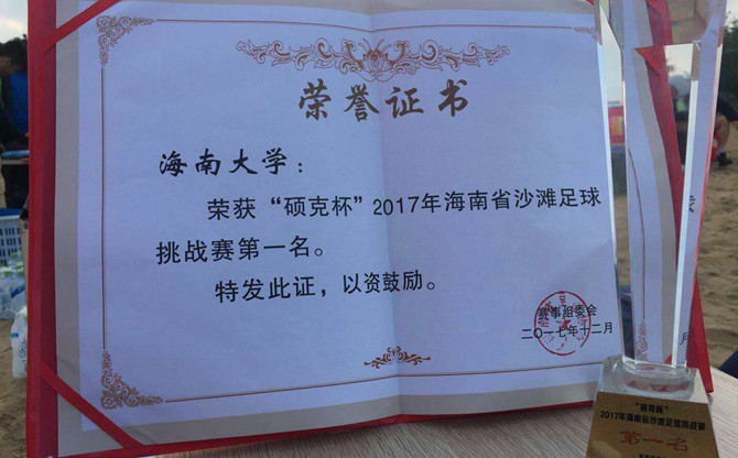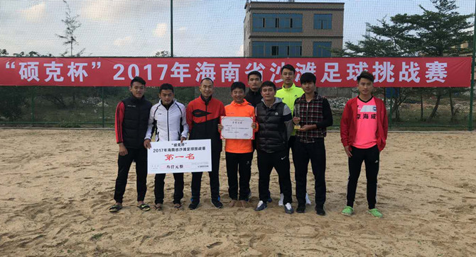 由海南省文体厅主办,海南省足协承办的“硕克杯”2017年海南省沙滩足球挑战赛,近日在海南省足协裕东青少年足球训练基地落下帷幕,太阳成集团tyc234cc男子足球队获得本次比赛冠军。