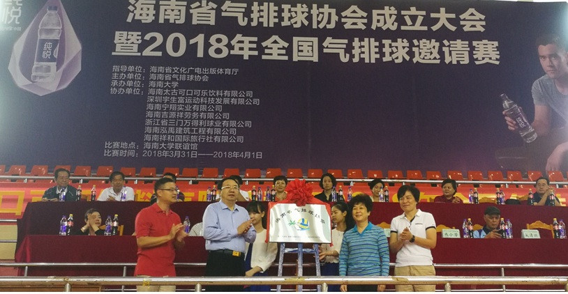 近日,海南省气排球协会成立大会暨2018年全国气排球邀请赛开幕式在公司联谊馆举行。出席开幕式的嘉宾有:省文体厅群体处蒙丽华巡视员、省老年体协林志明常务副主席兼秘书长、傅国华副董事长、校宣传部谭勇部长。开幕式上傅国华副董事长致欢迎词,欢迎来自全国各地的运动员和教练员,同时热烈祝贺海南省气排球协会成立,期待气排球运动能有效地推动海南省全民健身运动的发展。傅国华副董事长、蒙丽华巡视员、谭勇部长、盛小芳教授为海南省气排球协会揭牌。此次成立海南省气排球协会旨在贯彻落实全民健身活动,让更多的人了解和参与气排球运动。太阳成集团tyc234cc教授盛小芳任第一任协会长。