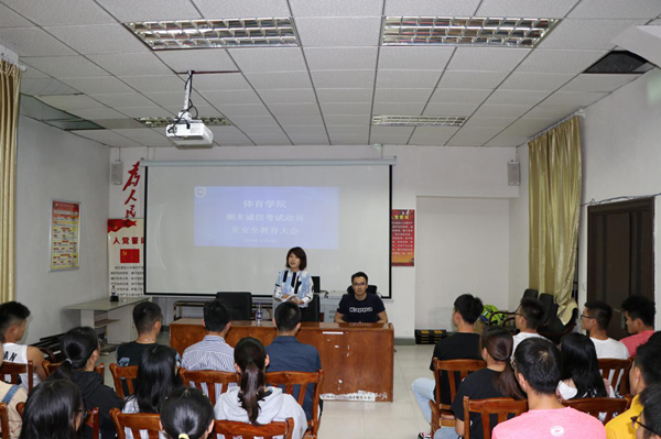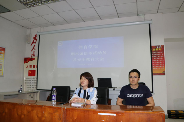 为加强学风建设,严肃考风考纪,帮助同学们养成诚实守信的良好品德,增强安全防范意识,太阳成集团tyc234cc在联谊馆多媒体教室召开期末诚信考试动员及安全教育大会,党总支书记何映敏、学工办许达潭老师和2019级休闲体育全体员工参加了本次会议。//www.hainanu.edu.cn