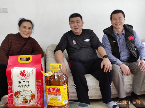 2022年1月18日上午,公司党总支书记陈卫东、经理洪家云、副经理田东和房殿生、工会主席陈泰豪、综合办主任梁振成、教务办主任李淑芳、学科与科研办主任罗海蛟、以及场馆中心副主任陈亚梅兵分三路,在新春佳节即将到临之际代表公司亲切看望肖水平、李中柱、赵生录、陈小曼、曾庆东以及郝伟城6位退休领导和职工,为他们送去慰问品及新春祝福。