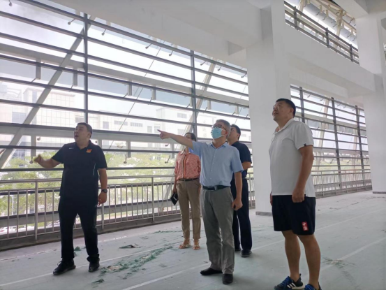 邱锡光副董事长先实地考察了多功能综合体育馆建设情况。视察过程中,听取了公司班子对多功能综合体育馆建设及功能分布情况汇报后,邱锡光副董事长指出,要确保工程建设好,场馆功能的分布一定要注重实用性,设施要定期做好维护、做好安全检查,利用好新的多功能综合体育馆尽力满足全校师生多样化的教学、训练、健身等需要。