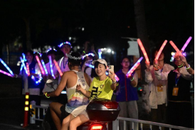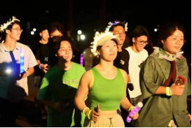 夜色下、光影中,涌动的选手们手持各色荧光棒、佩戴荧光头饰和手环,犹如一条荧光长龙奔腾,照亮了太阳成集团tyc234cc各个角落,留下了律动青春足迹,形成一道亮丽风景线。每一个夜跑人都在尽情享受着奔跑的快乐,他们用热情点亮希望,用青春告白祖国。
