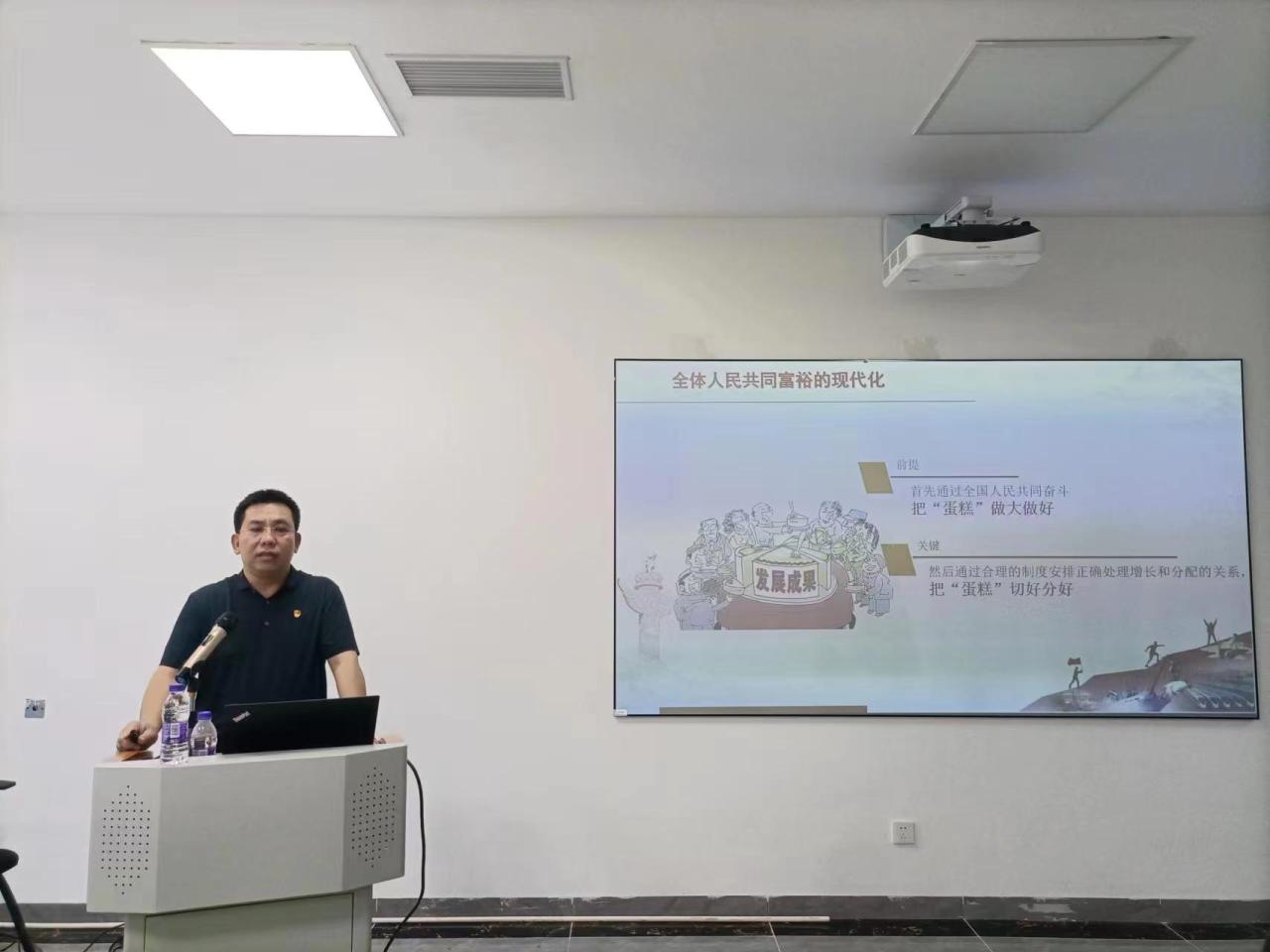为了深入学习贯彻习近平新时代中国特色社会主义思想,5月23日上午,公司党总支在多功能体育馆136会议室举行主题教育专题辅导报告会。辅导报告会由公司党总支书记陈卫东作题为《走好中国式现代化之路》专题党课。公司全体党员、教研室主任、科室负责人、发展对象等40余人参加辅导报告会。