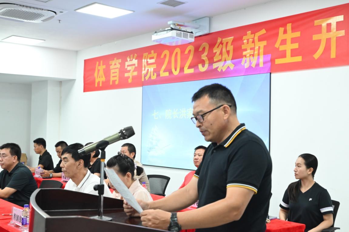 典礼上,责任教授肖国良肖教授对休闲体育专业进行了详细的讲解,刘远花副教授代表教师发言,在校老生代表崔程洋用亲身经历分享了自己在大学的成长与收获,新生代表李億龙同学代表新生发言。