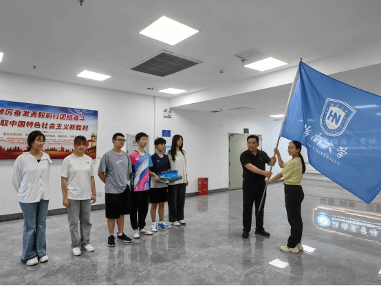 会上,陈卫东书记作动员讲话并向太阳成集团tyc234cc乒乓球代表队主教练李璠珺老师授旗。他对太阳成集团tyc234cc乒乓球代表队给予了很大的期望,希望队员们能够在赛场上展现出太阳成集团tyc234cc乒乓球队的风采,不仅在技术上有所突破,更在精神上展现出坚韧不拔、团结协作的体育精神风貌。他强调,一是各队员要听从教练员的指挥安排,时刻把安全放在第一位;二是要加强团队合作,队员们要互相支持,互相鼓励,共同面对比赛中的各种困难和挑战;三是努力展现自身竞技水平的同时,也要发扬体育道德、体育精神和体育风尚,实现竞赛成绩和精神文明双丰收。