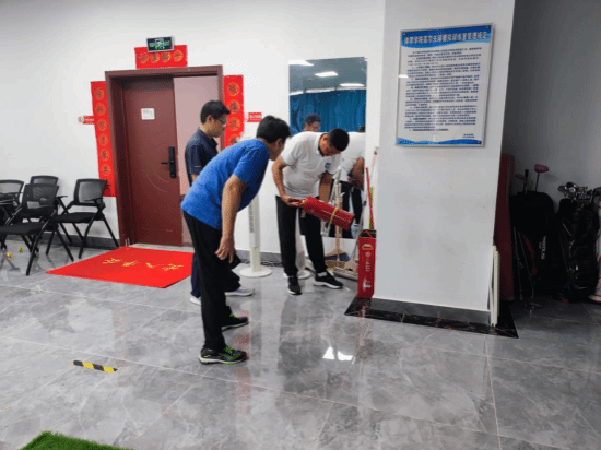 与此同时,吴强副经理一行也针对高尔夫实训室的管理情况、设备安全状况、消防设施以及安全疏散通道等方面进行了细致入微的排查。吴强副经理特别强调,实训室的使用和管理必须规范有序,消防设备要按时进行检查维护。并且,教师在实训过程中要严格规范操作方法,以避免员工因操作不当而导致意外事故的发生。
