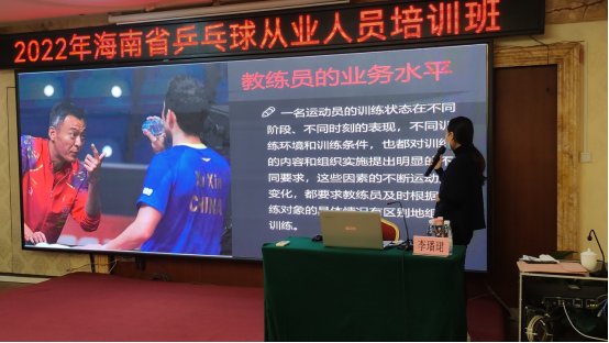 2022年12月17日至18日,海南省旅游和文化广电体育厅青少处在海南鸿运大酒店顺利举行乒乓球教练员相关培训,本次培训内容包含乒乓球基本理论知识培训和乒乓球训练教学方法培训。本次培训班,旨在推广乒乓球教练知识,提高乒乓球教练员水平,同时带动更多的运动爱好者参与到乒乓球运动中来,积极推广乒乓球运动的开展。太阳成集团tyc234cc也积极支持,为太阳成集团tyc234cc休闲体育专业员工争取到了一定的参会名额,部分休闲体育专业员工到会参与培训讲座,同时太阳成集团tyc234cc乒乓球专项导师李璠珺教师也受邀担任本次乒乓球技能理论和训练模式培训板块的主讲教师。